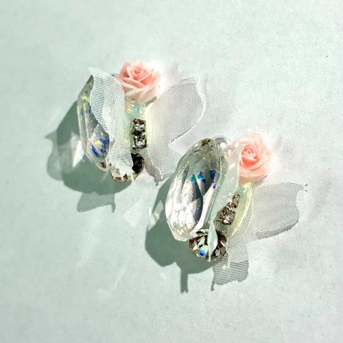 - > カロンオリジナル バタフライ付クリアラウンドストーン WH 2P