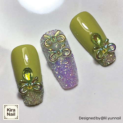 - > KiraNail オーロララインリボン オーロラグリーン 10P