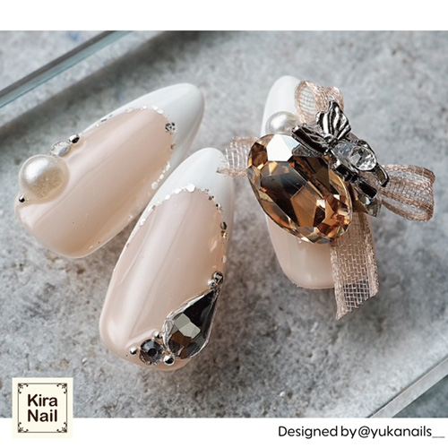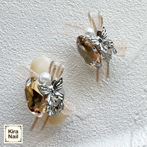 - > KiraNail シュリータ シトロンストーン&ベージュリボン