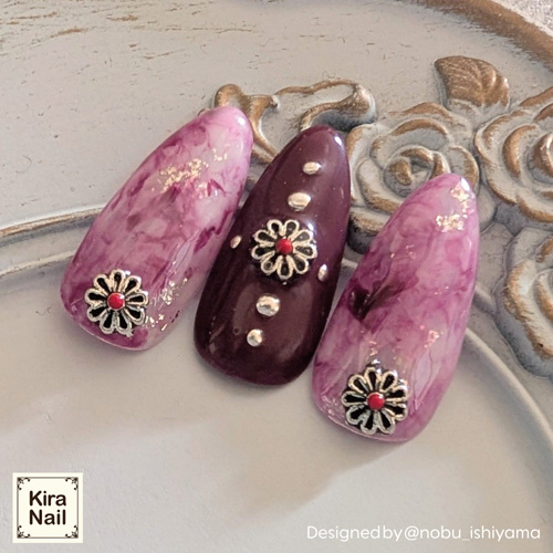 - > KiraNail メキシカンマーガレット シルバーレッド 5P